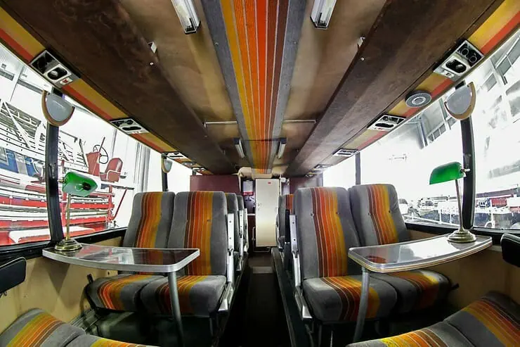Of course, Neoplan engineers had to solve numerous technical challenges. The Jumbocruiser has four axles and is a large bendy bus. The first 10 of the 11 Jumbocruisers ever made were mid-engined, with either the 12.1 or 18.1-litre diesel engine located in the middle. This, by the way, meant that access to the back of the bus was only possible on the second floor. This limited the accessibility of the rear lower section, so the passengers were not seated here – it was where the bar, toilet, and luggage compartment were located.