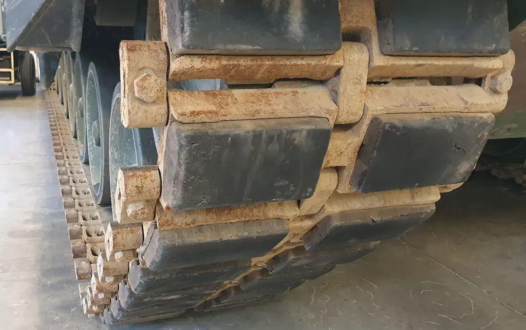 Modern main battle tanks also have advanced suspension systems that absorb bumps and adapt to uneven surfaces. And their tracks are fitted with rubber pads that protect the road as well as improve traction on hard surfaces. Without those pads, the steel track links would crush and gouge the road. When needed, the rubber pads can be swapped for steel inserts to improve traction off-road.